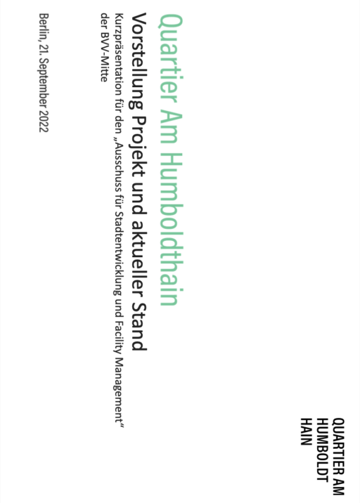 The “Committee for Urban Development and Facility Management” of the District Assembly Mitte of Berlin (in short: BVV Mitte) deals with concrete topics and projects of urban and open space development of the district in its monthly meetings.