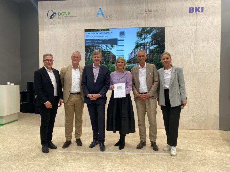 Das Quartier am Humboldthain, die größte Gewerbeentwicklung innerhalb des S-Bahn-Rings, hat mit der Platin-Vorzertifizierung die höchste Anerkennungsstufe der Deutschen Gesellschaft für Nachhaltiges Bauen (DGNB) erreicht. Dieser Erfolg ist das Ergebnis gemeinsamer Bemühungen der Gemeinde, der Politik und der Verwaltung. Sie unterstreicht die Bedeutung des Projekts als die zentralste der 11 Zukunftsorte Berlins, die im Koalitionsvertrag der Bundesregierung festgelegt sind.